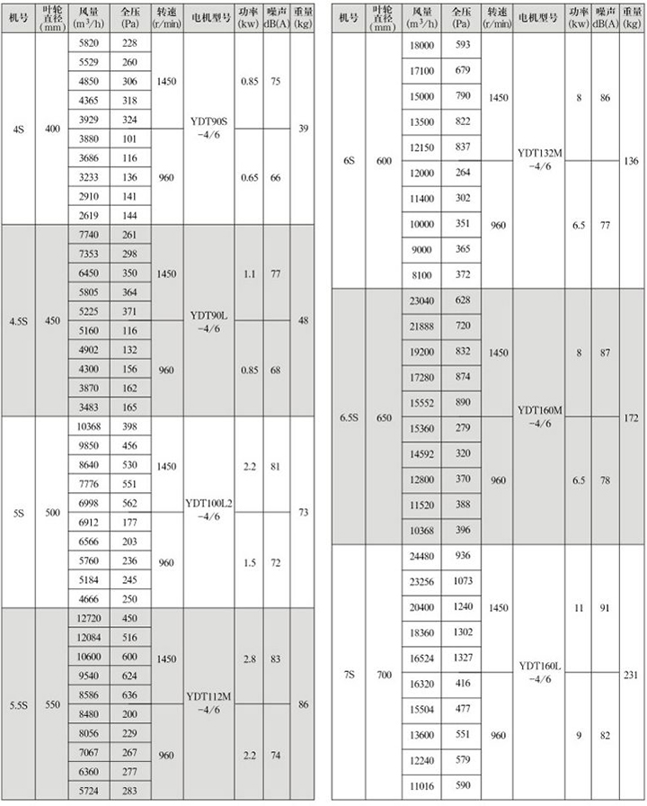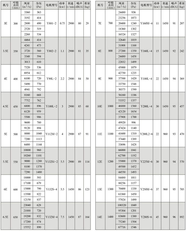 GXF系列斜流式通風(fēng)機(jī)是一種新型低噪高效節(jié)能型斜流式通風(fēng)機(jī),斜流式通風(fēng)機(jī)流量大于離心式風(fēng)機(jī),全壓高于軸流式風(fēng)機(jī),體積小于離心式風(fēng)機(jī),該風(fēng)機(jī)通過了模擬機(jī)的實驗研究,采用新的葉型與葉片,從而得到了更大的流量和壓力, 提高了風(fēng)機(jī)的效率。 GXF系列斜流通風(fēng)機(jī)按葉輪直徑分為300-1400mm十六種規(guī)格,按類型分A、B、C、D、E、F、S七種類型,共五十八個機(jī)號。風(fēng)量由1500mm-90000m3/h,全壓由185-2500Pa;這樣就給設(shè)計部門和也難怪乎單位提供了充分的選擇條件,具體數(shù)據(jù)參照風(fēng)機(jī)性能參數(shù)表。 風(fēng)機(jī)材料有鋼制,玻璃鋼制作,亦可防爆制作。(采用防爆措施,配用鋁合金材料) GXF系列斜流式通風(fēng)機(jī)性能參數(shù)表 GXF-A型斜流式通風(fēng)機(jī)性能參數(shù)表 四、GXF系列斜流式通風(fēng)機(jī)外形及安裝尺寸(mm) GXF系列斜流式通風(fēng)機(jī)外形及安裝尺寸(A、B、C、D、E、F型) GXF系列斜流式通風(fēng)機(jī)是一種新型低噪高效節(jié)能型斜流式通風(fēng)機(jī),斜流式通風(fēng)機(jī)流量大于離心式風(fēng)機(jī),全壓高于軸流式風(fēng)機(jī),體積小于離心式風(fēng)機(jī),該風(fēng)機(jī)通過了模擬機(jī)的實驗研究,采用新的葉型與葉片,從而得到了更大的流量和壓力, 提高了風(fēng)機(jī)的效率。 GXF系列斜流通風(fēng)機(jī)按葉輪直徑分為300-1400mm十六種規(guī)格,按類型分A、B、C、D、E、F、S七種類型,共五十八個機(jī)號。風(fēng)量由1500mm-90000m3/h,全壓由185-2500Pa;這樣就給設(shè)計部門和也難怪乎單位提供了充分的選擇條件,具體數(shù)據(jù)參照風(fēng)機(jī)性能參數(shù)表。 風(fēng)機(jī)材料有鋼制,玻璃鋼制作,亦可防爆制作。(采用防爆措施,配用鋁合金材料) GXF系列斜流式通風(fēng)機(jī)性能參數(shù)表 GXF-A型斜流式通 GXF-B型斜流式通風(fēng)機(jī)性能參數(shù)表 GXF-C型斜流式通風(fēng)機(jī)性能參數(shù)表 GXF-D型斜流式通風(fēng)機(jī)性能參數(shù)表 GXF-E型斜流式通風(fēng)機(jī)性能參數(shù)表 GXF-F型斜流式通風(fēng)機(jī)性能參數(shù)表 GXF-S型雙速斜流式通風(fēng)機(jī)性能參數(shù)表(1) GXF-S型雙速斜流式通風(fēng)機(jī)性能參數(shù)表(2) GXF系列斜流式通風(fēng)機(jī)外形及安裝尺寸(mm) GXF系列斜流式通風(fēng)機(jī)外形及安裝尺寸(A、B、C、D、E、F型) GXF-S系列雙速斜流式通風(fēng)機(jī)外形及安裝尺寸 GXF-BX消聲型斜流風(fēng)機(jī) GXF-BX1消聲型斜流風(fēng)機(jī)安裝尺寸(mm) GXF-BX2消聲型斜流風(fēng)機(jī)安裝尺寸(mm)